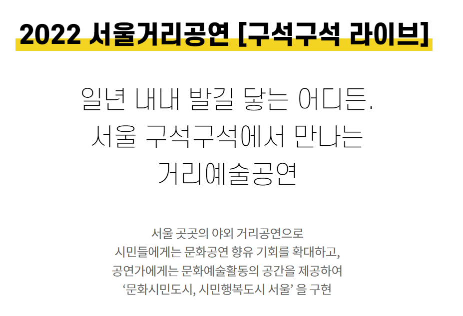 2022 서울거리공연 "구석구석 라이브" 홈페이지